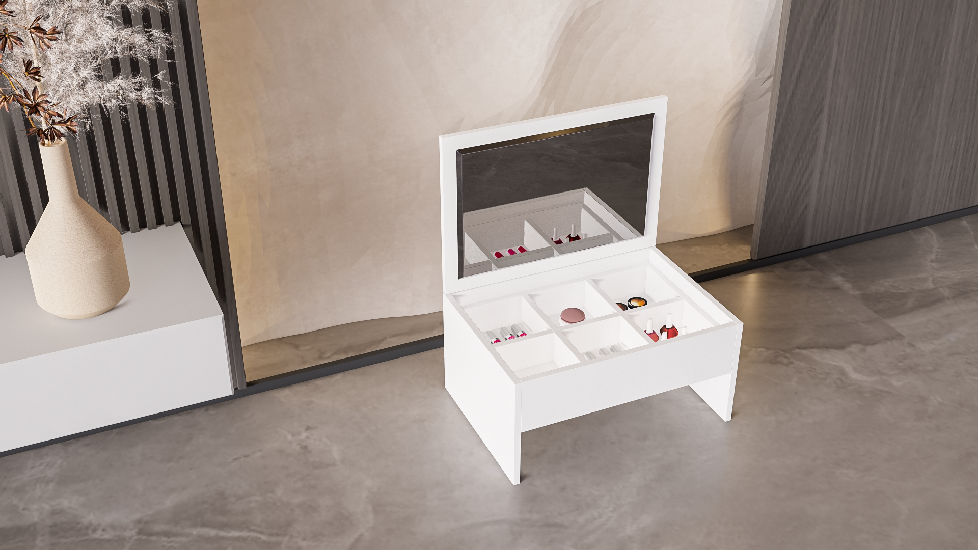 Mô Tả Sản Phẩm: Bàn trang điểm gấp gọn đa năng thích hợp cho không gian nhỏ. Bàn trang điểm của chúng tôi tích hợp nhiều tính năng tiện ích.