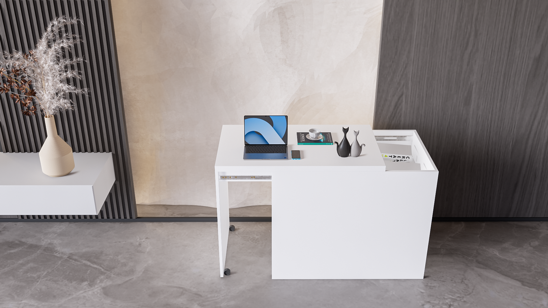 Mô Tả Sản Phẩm: Bàn làm việc kết hợp tủ để xếp gọn 1 cách thông minh và tiện lợi. Có thể thu gon dễ dàng đê tiết kiệm được không gian cho ngôi nhà của bạn.