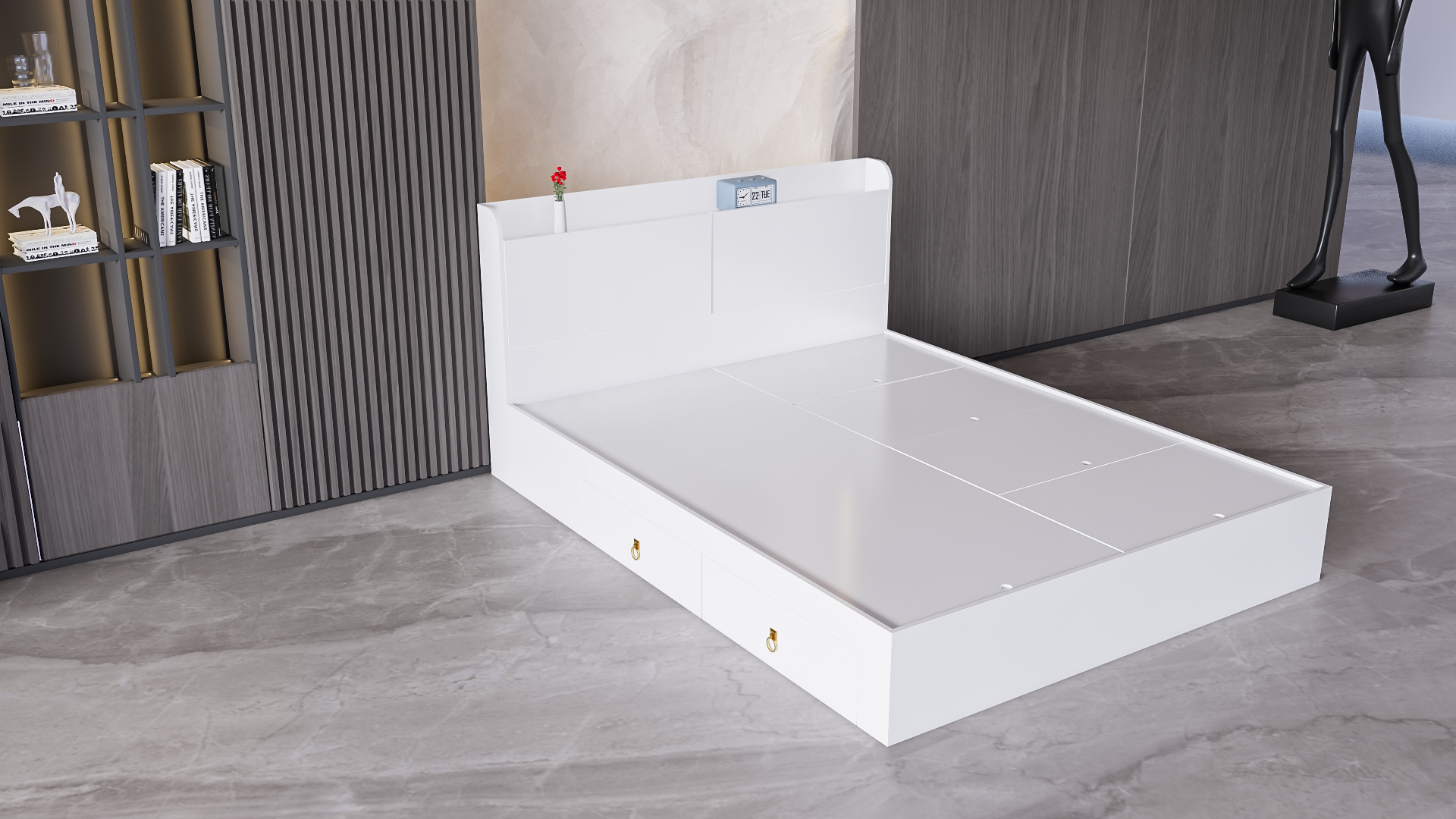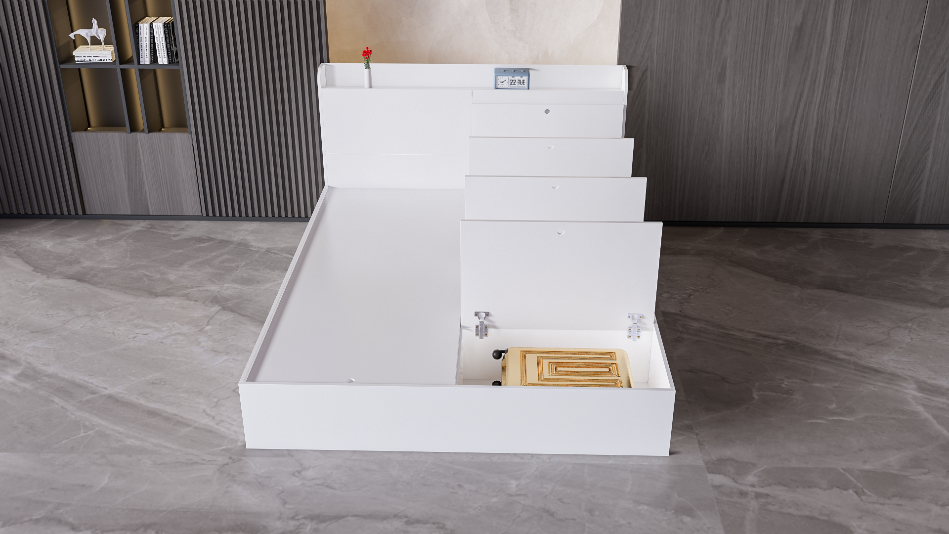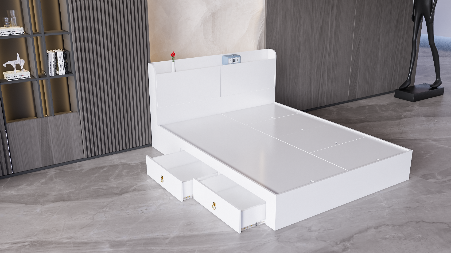Mô Tả Sản Phẩm: Giường ngủ có nhiều ngăn để chứa đồ đạc tiết kiệm không gian phù hợp cho các không gian nhỏ.