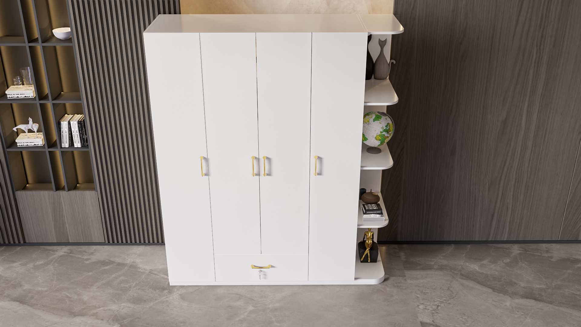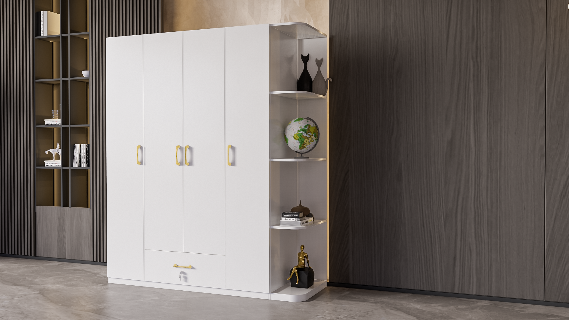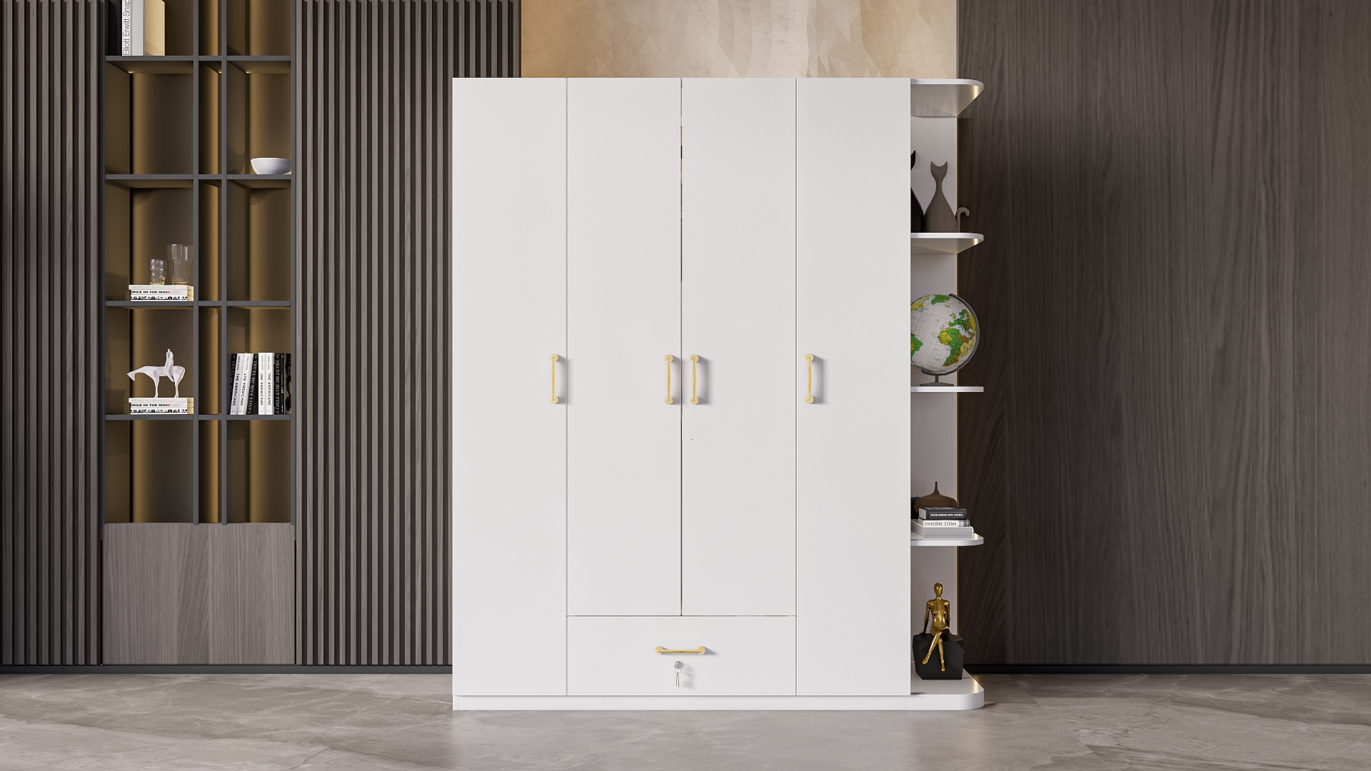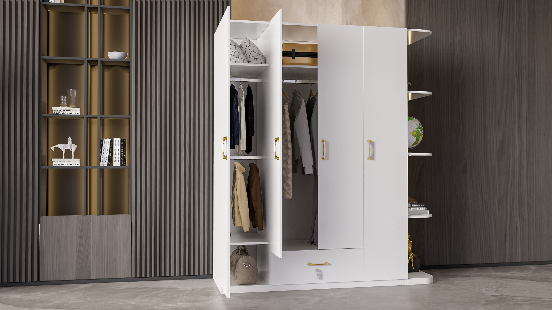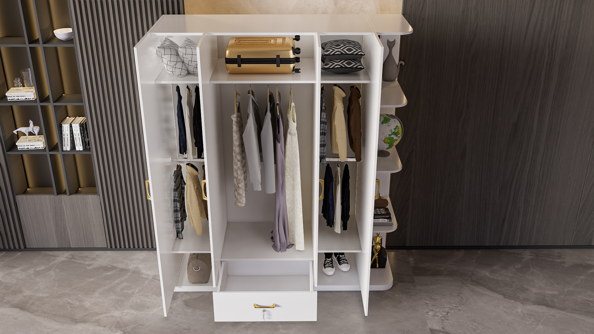 Mô Tả Sản Phẩm: Tủ quần áo đơn giản có nhiều không gian để treo quần áo cũng như để đồ đạc.